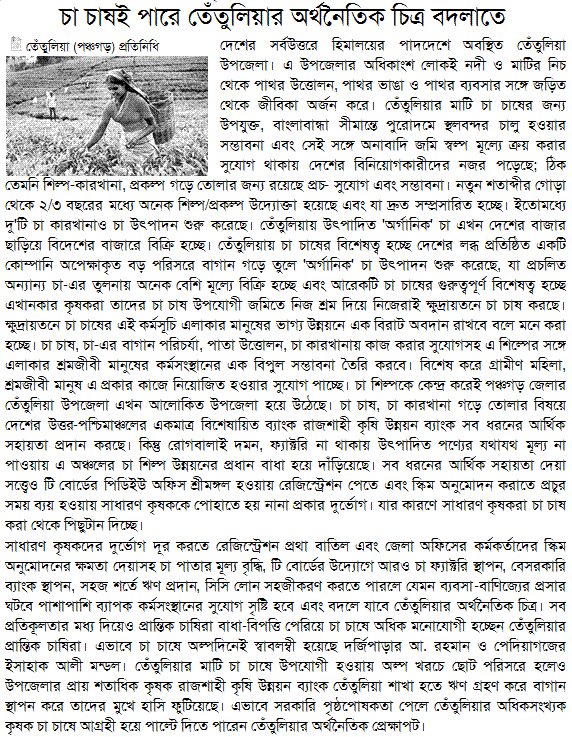 Aug 29, 2009 – Small-scale tea farming becoming popular in Panchagarh – The Independent